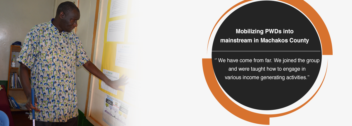“After the accident, I was instantly a beggar because I could not move, let alone work. I would beg for everything from food to clothes”, says James. As he struggled with disability, James heard of a PWD group, Machakos Central Group for the Disabled.