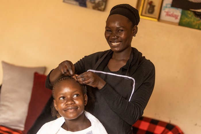 “From when I was a young girl in school, I always admired how girls and women would plait their hair. That is how I came to love hair and eventually beauty. I met mum Lunar when I was in Kibera, and thanks to her, I was able to go to hairdressing and beauty school and advance on my skills.” shares 22-year-old Yvonne Whitney.